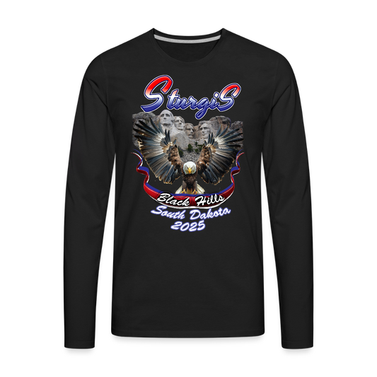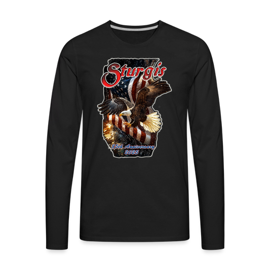 2025 Premium Sturgis Motorcycle Rally Biker Long Sleeve Mount Rushmore and Eagle T-Shirt 85th Anniversary Edition - Front Print -