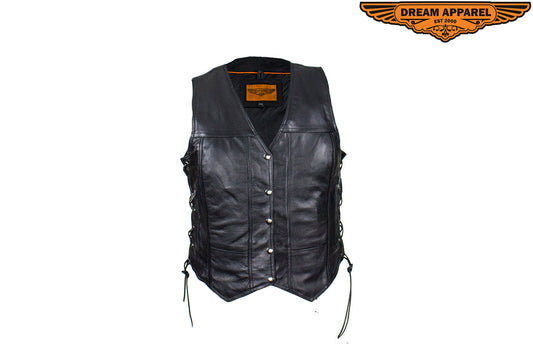 Dream Apparel Black Conceal Carry Pocket Vest with Small Studded Pink Eagle