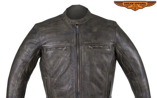 Distressed Brown Racer Jacket with Concealed Carry Pockets