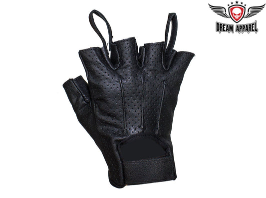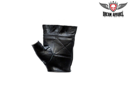Motorcycle Fingerless Leather Gloves With Embroidered Black Flame