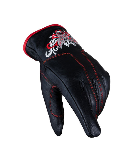 Dream Apparel Red & Silver Butterfly in a White Graphic Embroidered Leather Gloves