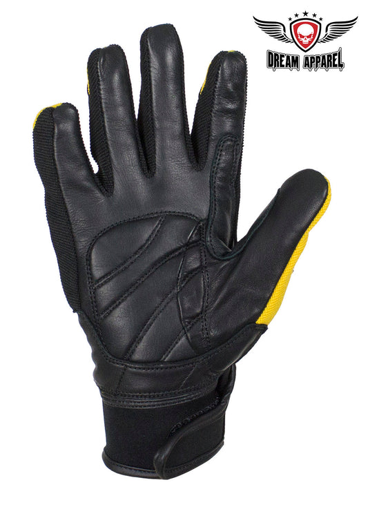 Dream Apparel Yellow and Black Leather Motorcycle Gloves