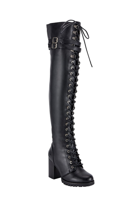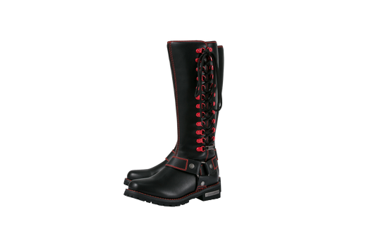 Dream Apparel® Women Biker Long Boots with Red Laces