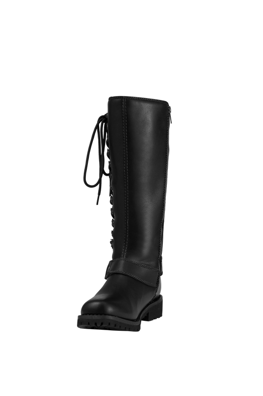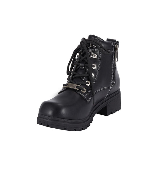 Womens Biker Boots With Lace Up Front & Side Zipper