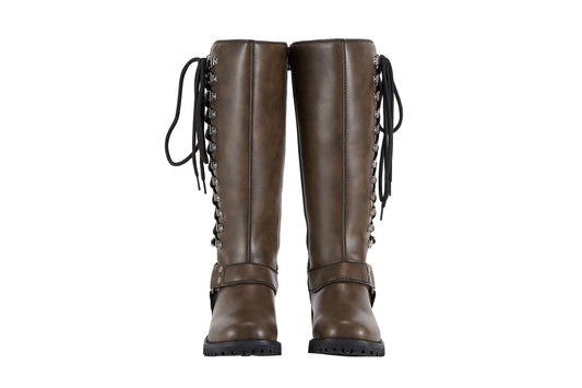 Wide Biker Boots With Lace Up Front & Side Zipper