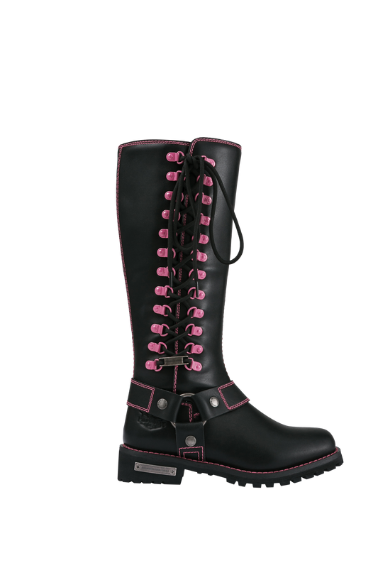 Dream Apparel® Women Biker Long Boots with Pink Laces