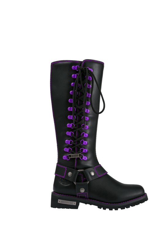Dream Apparel® Women Biker Long Boots with Purple Laces