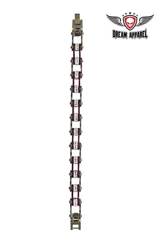 Red & White Stainless Steel Motorcycle Chain Bracelet