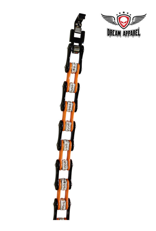 Large Black And Orange Motorcycle Chain Bracelet with Gemstones