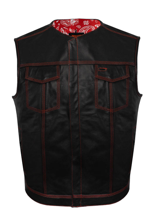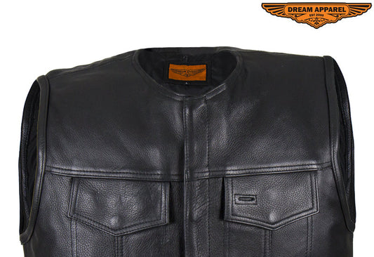 Dream Apparel Men's Motorcycle Club Vest With Black Liner Conceal Carry Gun Pockets