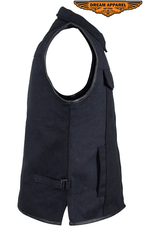 Mens Canvas Motorcycle Vest With Two Conceal Carry Pockets