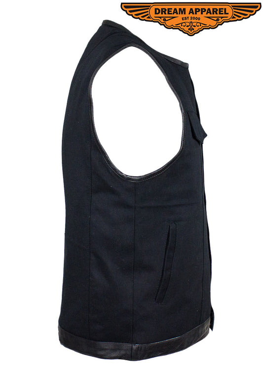 Dream Apparel Men's Premium Black Denim Motorcycle Club Vest Conceal Carry Pockets