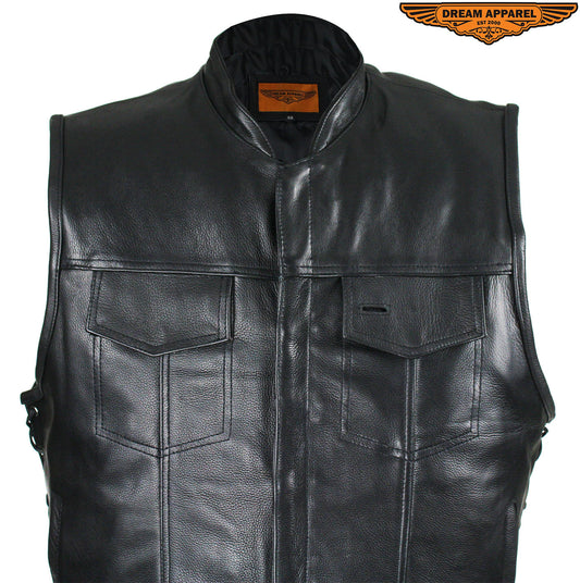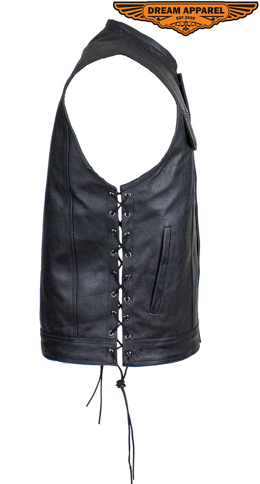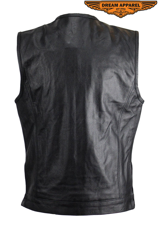 Dream Apparel Mens Leather Club Vest With Conceal Carry Pockets