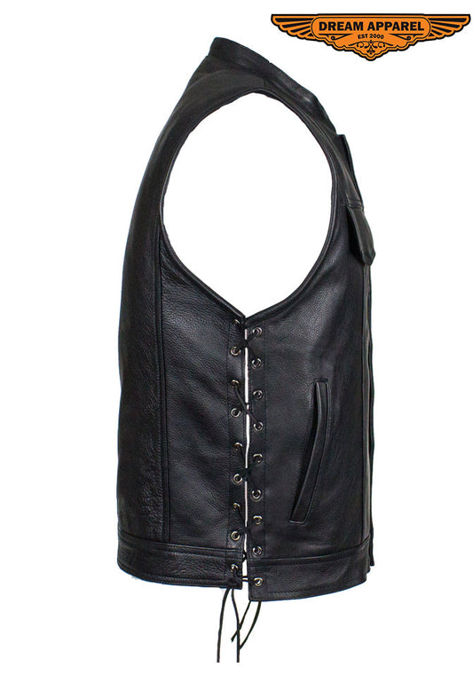 Men's Leather Conceal Carry Pocket Vest with Side Laces