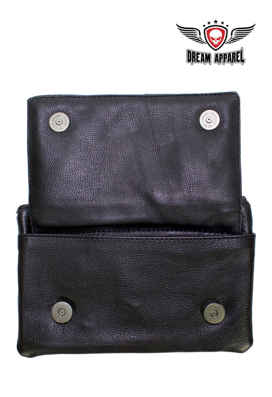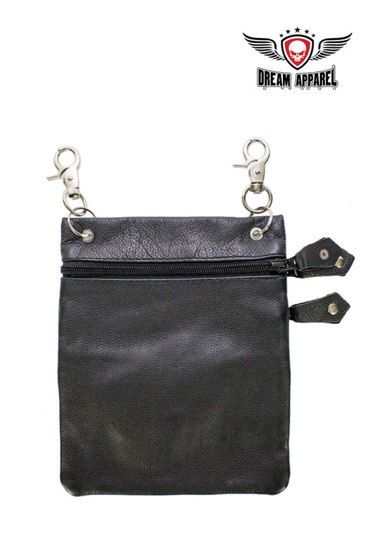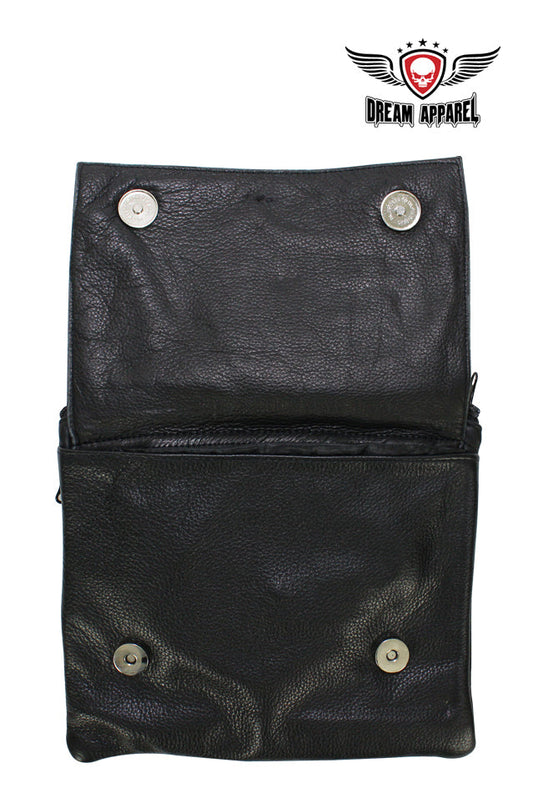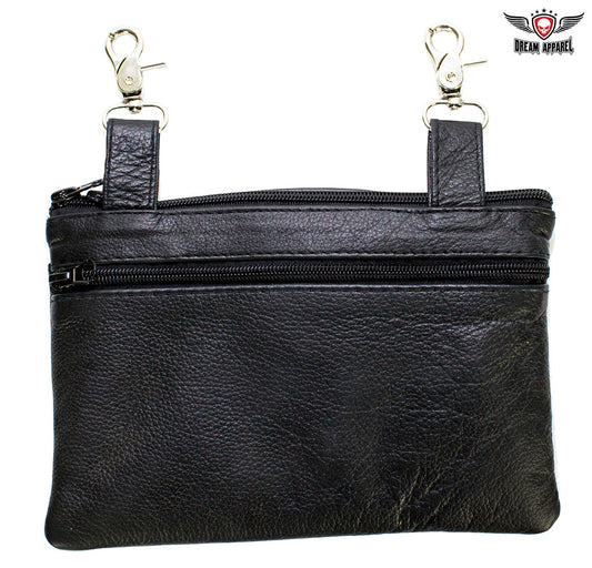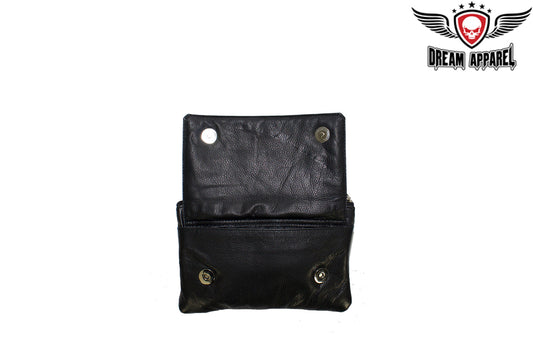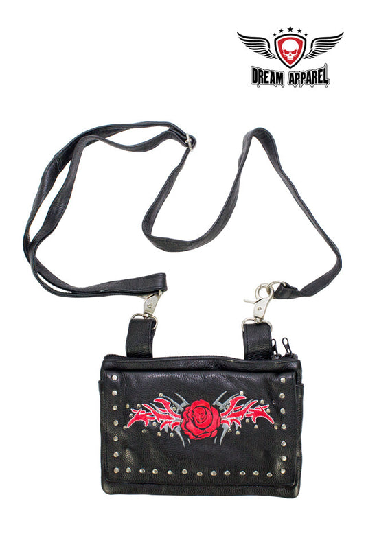 Studded Black Concealed Gun Carry Naked Cowhide Leather Belt Bag W/ Red Rose