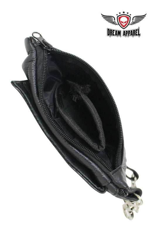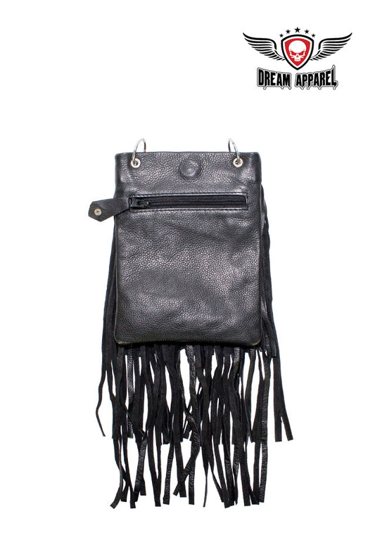 Black Naked Cowhide Leather Belt Bag w/ Chain and Fringe