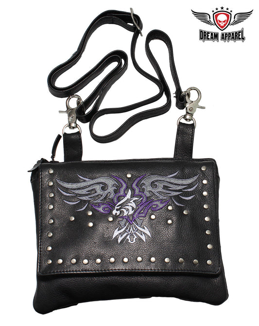 Studded Naked Cowhide Leather Gun Holster Belt Bag with Purple & Silver Eagle