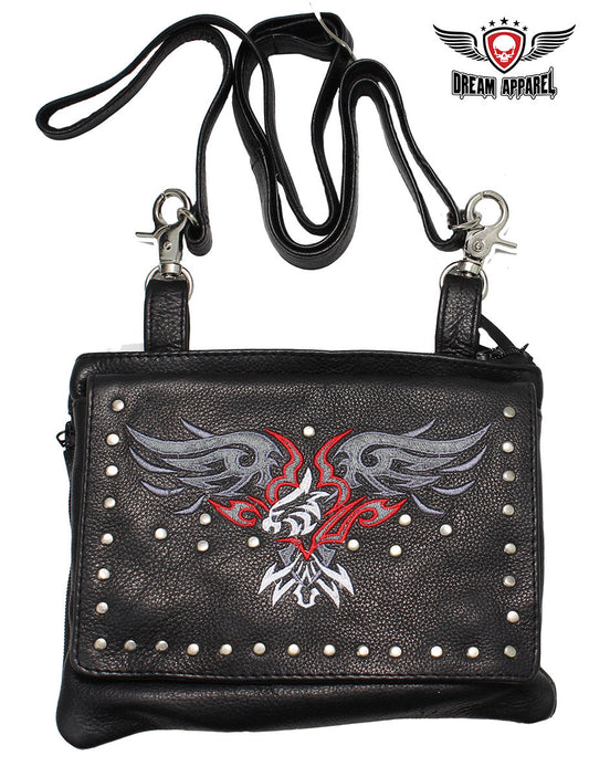 Studded Naked Cowhide Leather Gun Holster Belt Bag with Red & Silver Eagle