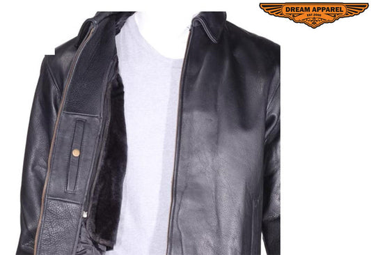 Mens Jacket Naked Cowhide Leather with Quilted Lining