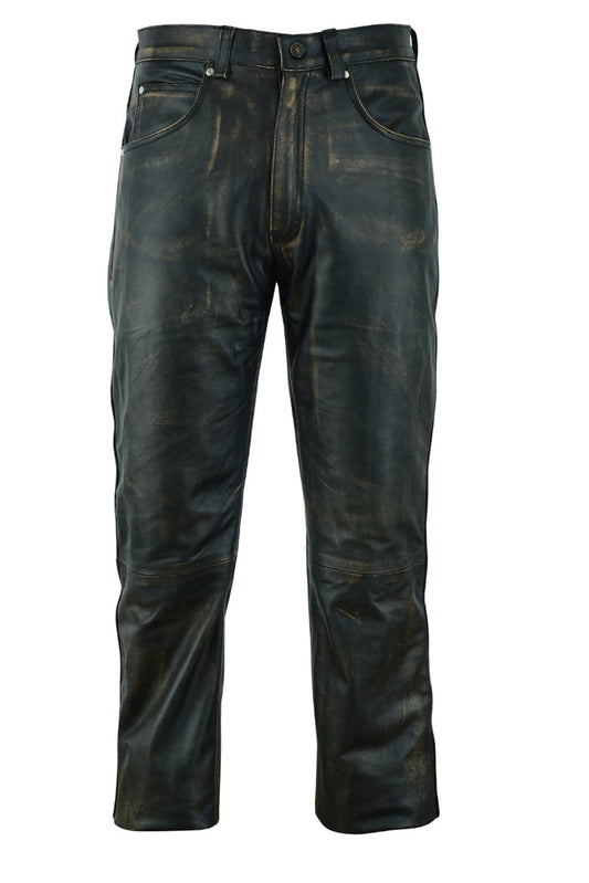 Men's Motorcycle Club Vest with Distressed Brown Leather Trim