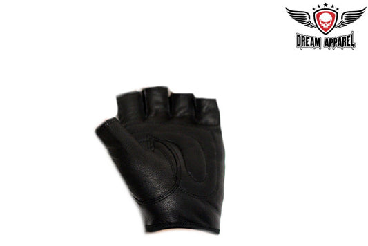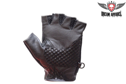 Motorcycle Fingerless Leather Gloves With Embroidered Black Flame
