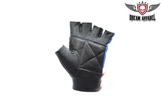 Leather Motorcycle Fingerless Gloves with USA Flag