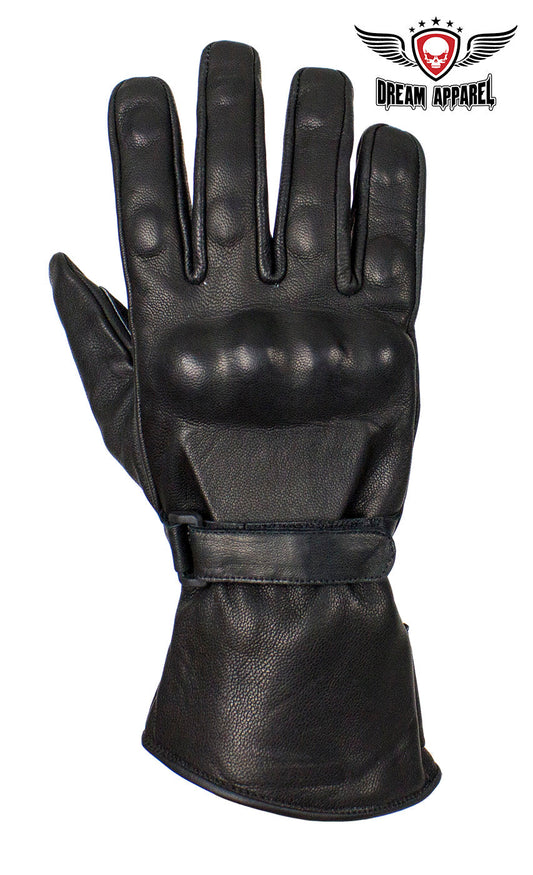 Dream Apparel Men's Leather Gauntlet Gloves With Hard Knuckle Protector