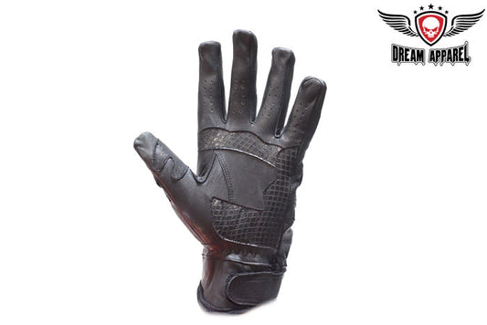 Motorcycle Fingerless Gloves With Holes & Velcro