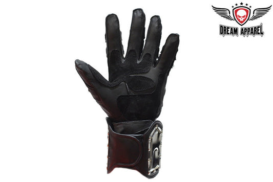 Men's Leather Racing Gloves With metal Knuckle Protector