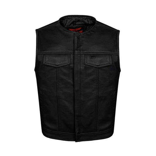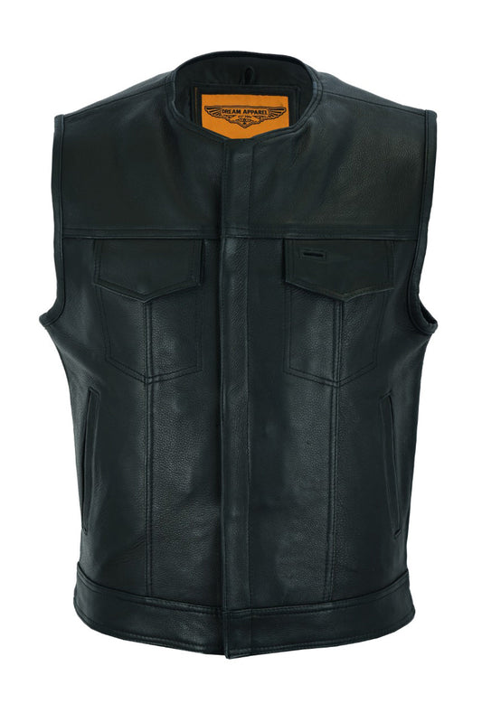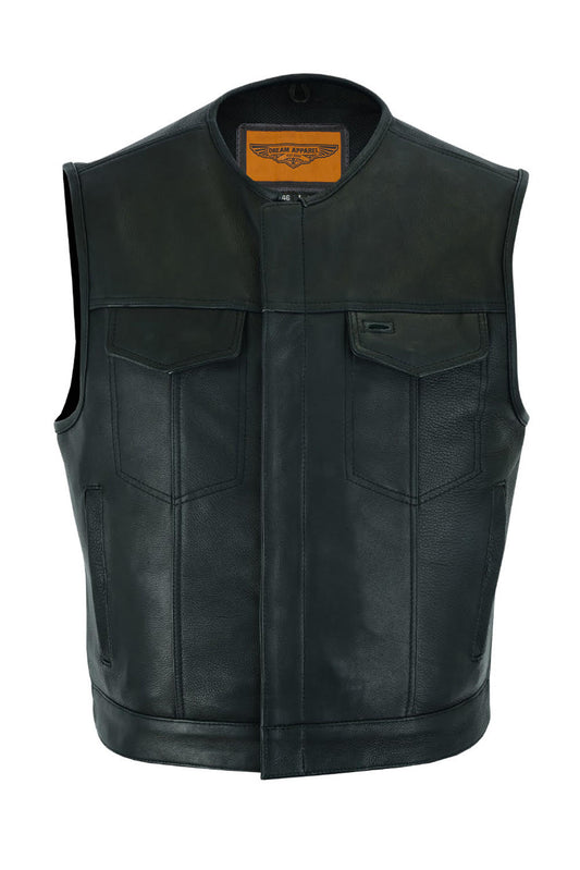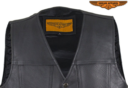 Dream Apparel Low Cut - Mens Leather Motorcycle Club Vest® Conceal Gun Pockets
