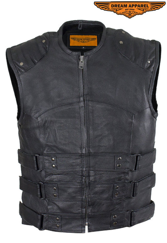 Mens Genuine Leather Replica Swat Vest With Gun Pocket