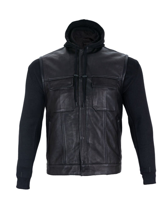 Mens Leather Motorcycle Vest No Collar Concealed Carry Gun Pockets