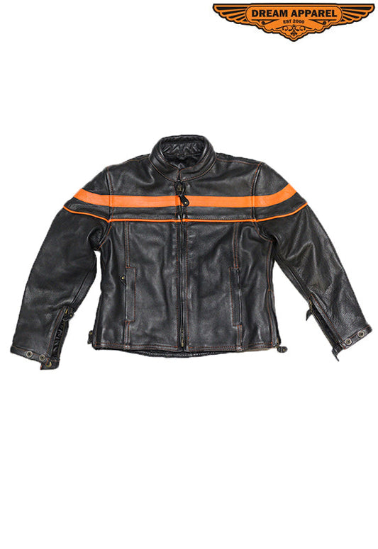 Leather Motorcycle Jacket With Black Stripes