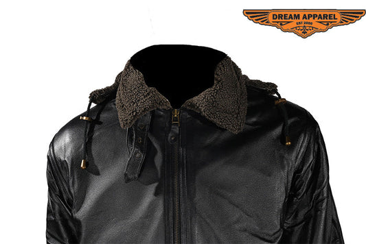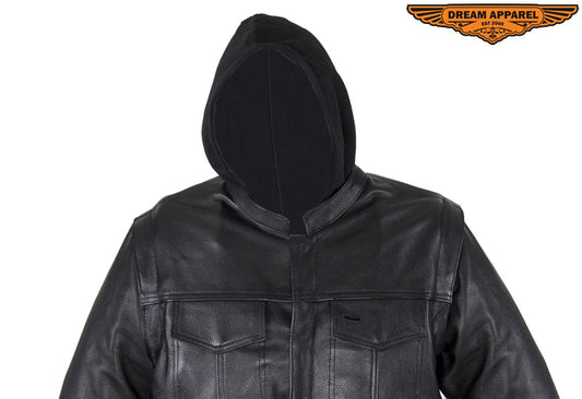 Dream Apparel Black Leather Jacket with Removable Sleeves & Hoodie