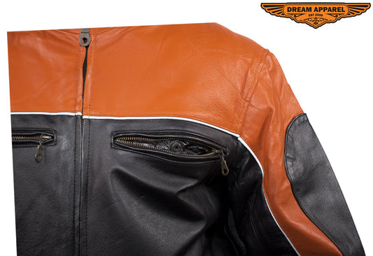 Mens Black & Orange Racer Jacket With Reflective Piping