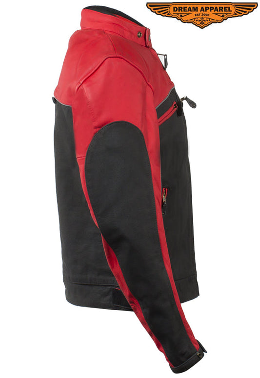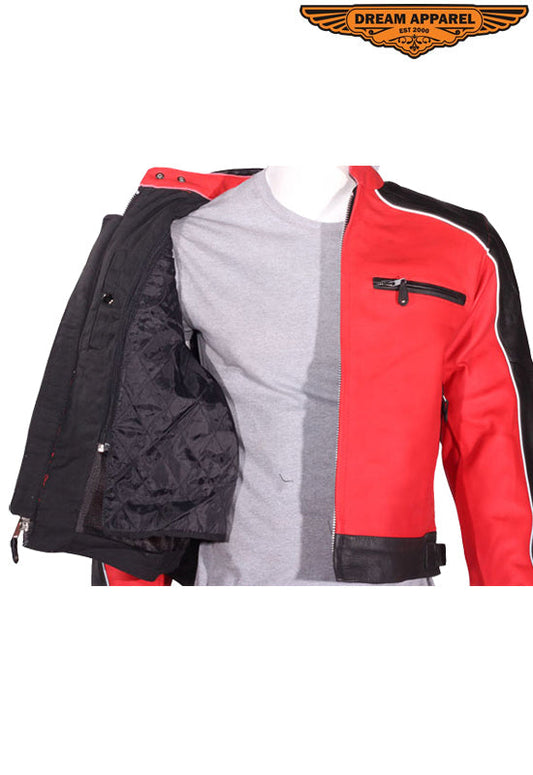 Mens Black & Red Racer Jacket With Reflective Piping