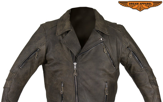 Dream Apparel Distressed Brown Naked Cowhide Leather Motorcycle Jacket With Conceal Carry Pockets