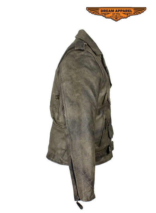 Dream Apparel Premium Goat Leather Grey Tone Conceal Pockets Expansion Side Panel Motorcycle Jacket