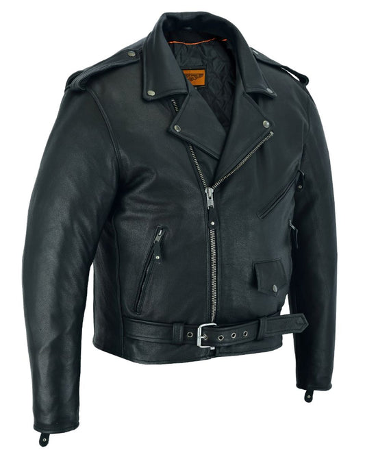 Classic Biker Police Motorcycle MC Jacket Concealed Gun Pockets Soft Cowhide Leather Heavy Duty