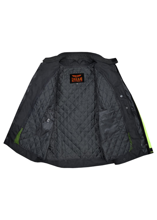 Dream Apparel Mens Motorcycle jacket Hi Vis Neon Flourecent Color, Armored Protective Round Neck