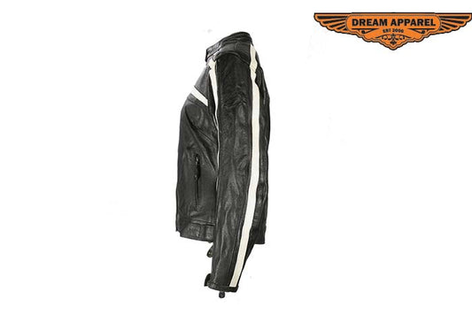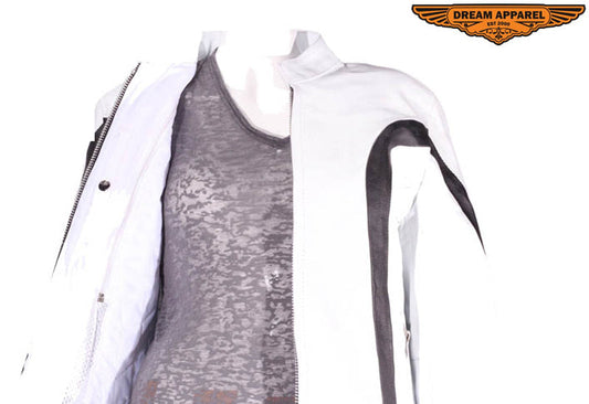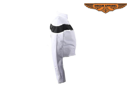 Women's White Lightweight Textile Jacket W/ Black Stripe