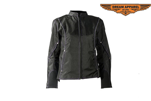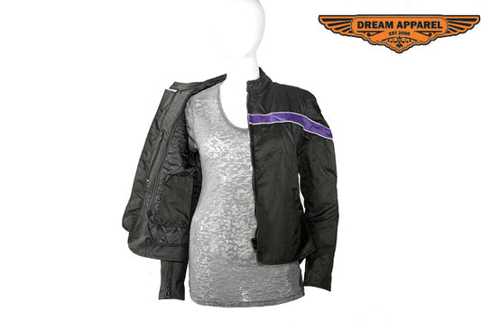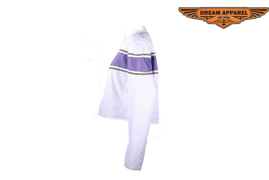 Women's White Lightweight Textile Jacket W/ Purple Stripe