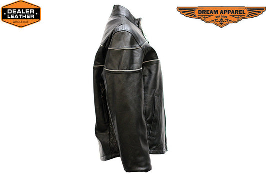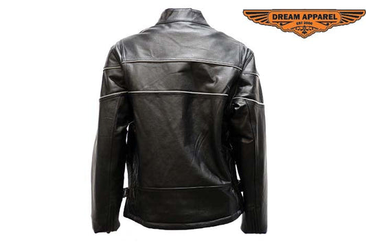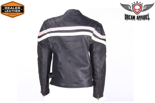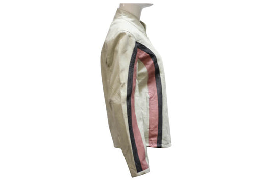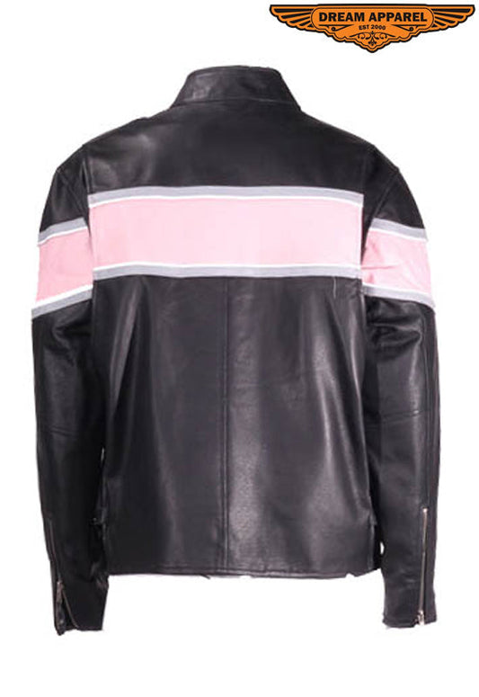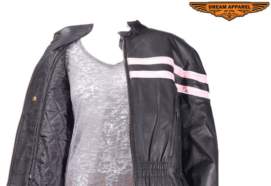Womens Soft Leather Jacket With Silver & Pink Stripes