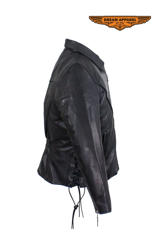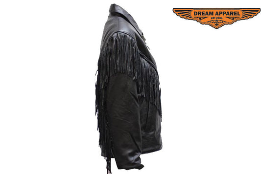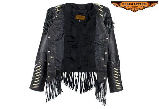 Women's Soft Leather Braided & Fringed Motorcycle Jacket