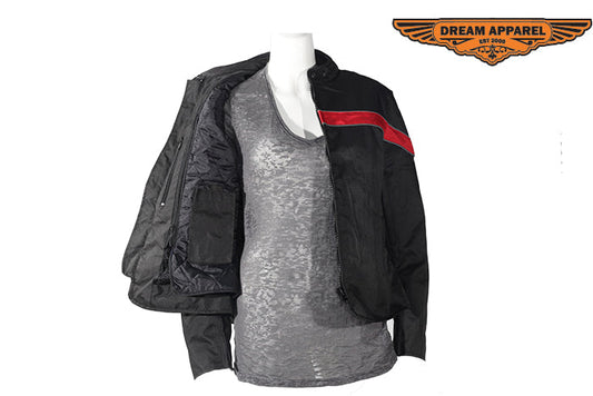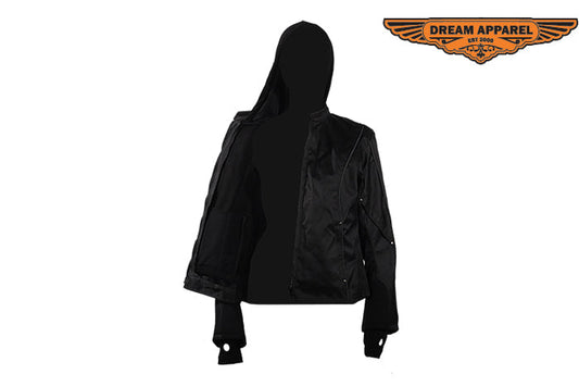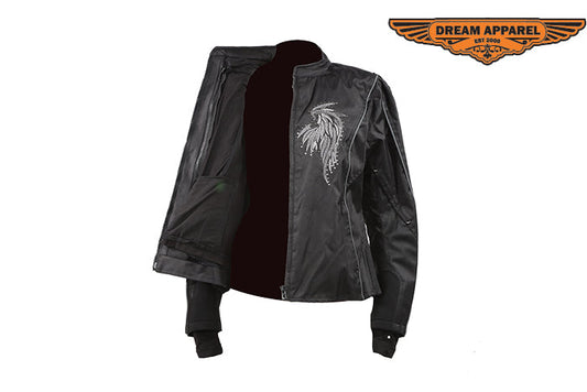 Womens Textile Motorcycle Jacket With Black Hoodie & Wings