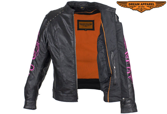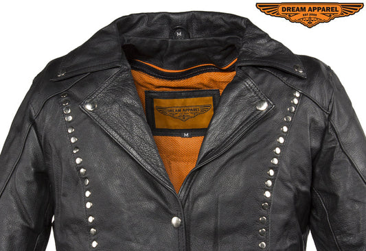 Womens Studded Leather Motorcycle Jacket With Concealed Carry Pockets