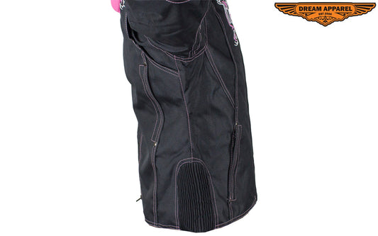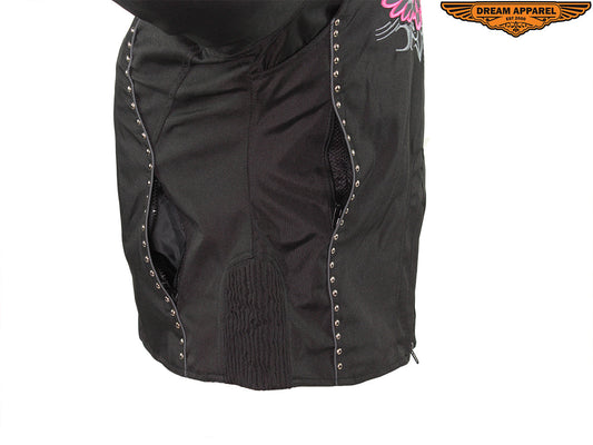 Women's Studed Motorcycle Textile Jacket With Pink Hoodie & Sull & Wings