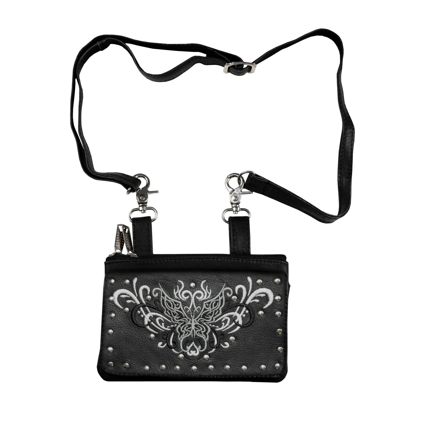 All Naked Cowhide Leather Black Butterfly Belt Bag