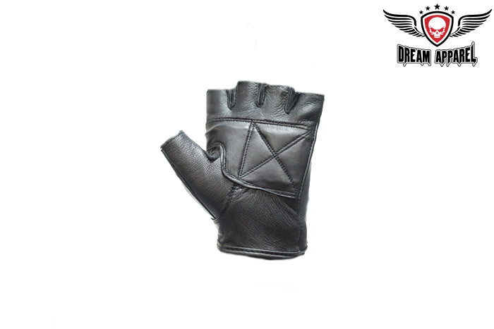 Biker Fingerless Gloves With Skull In Flames