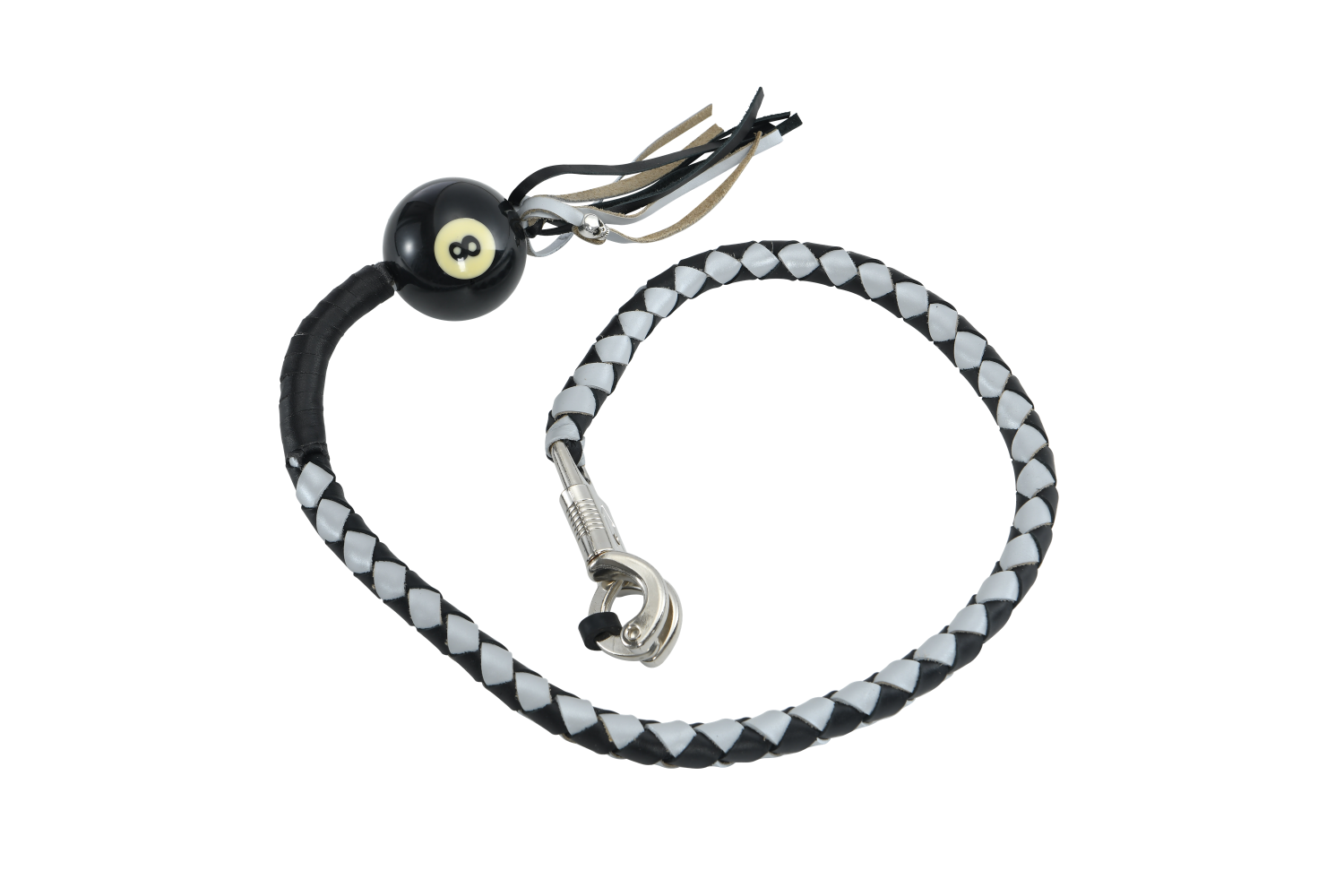 - Black And Silver Hand-Braided Leather Get back Whips with Ball-8, 42" Long